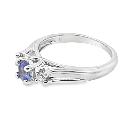 10K WHITE GOLD TANZANITE & DIAMOND 3-STONE RING 1/4 CT