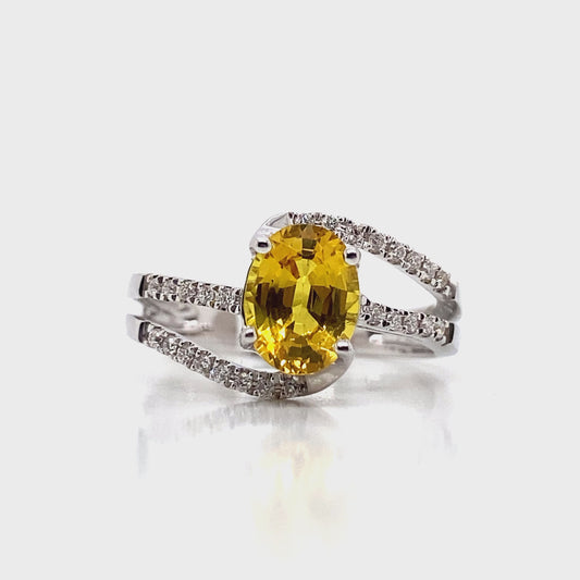 1.70 CT YELLOW SAPPHIRE & DIAMOND ACCENT RING IN 14K WHITE GOLD