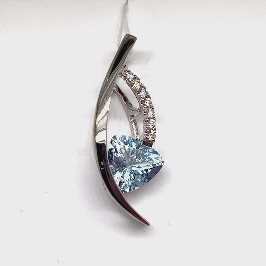 14K WHITE GOLD AQUAMARINE & DIAMOND ACCENT PENDANT 0.54 CT