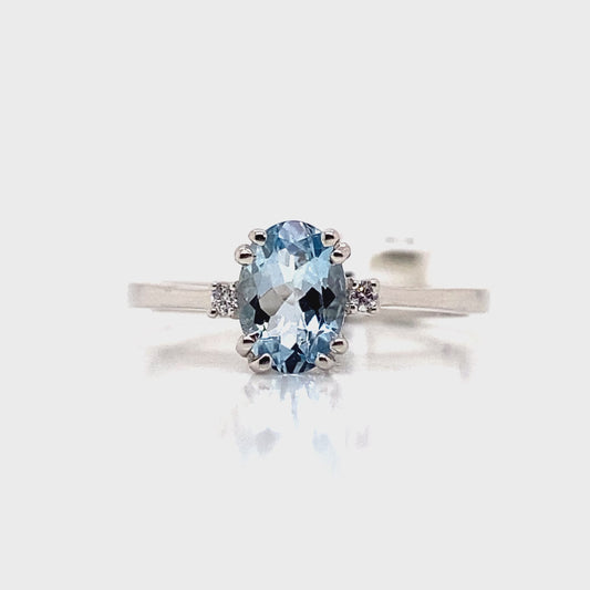 14K WHITE GOLD AQUAMARINE DIAMOND ACCENT RING .65 CT OVAL