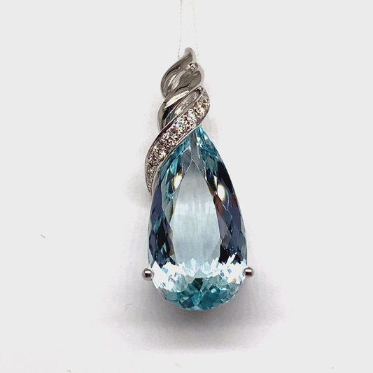 14K WHITE GOLD AQUAMARINE DIAMOND PENDANT 4.91 CT CENTER STONE