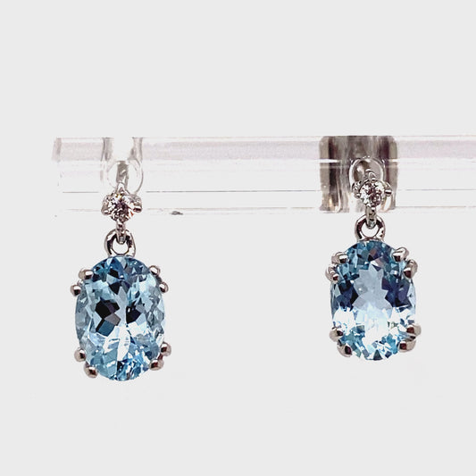 14K WHITE GOLD AQUAMARINE DIAMOND ACCENT EARRINGS 1.40 CT