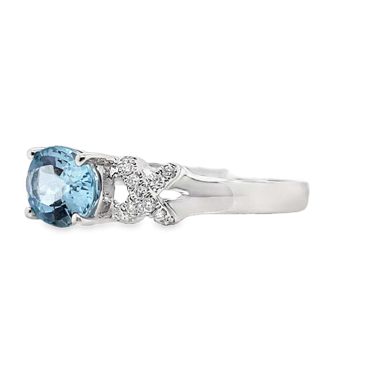 14K WHITE GOLD AQUAMARINE DIAMOND ACCENT RING 1.16 CT