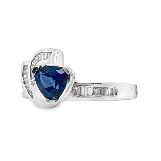14K WHITE GOLD BLUE SAPPHIRE RING 1.04 BAGUETTE 0.23