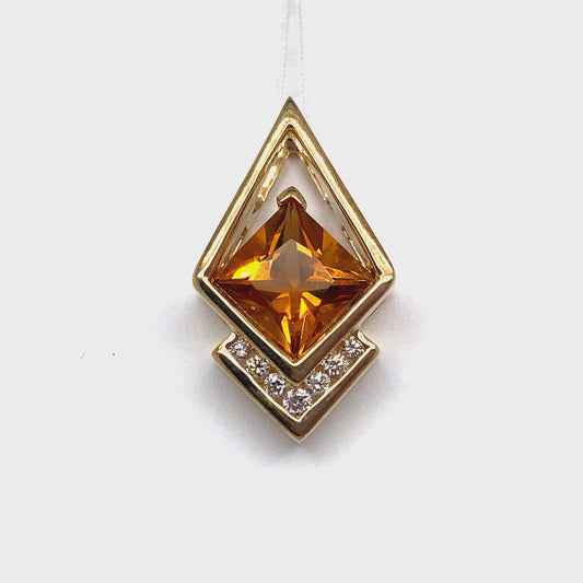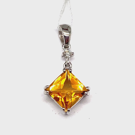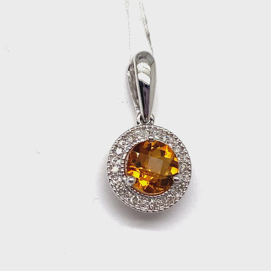 14K WHITE GOLD CITRINE & DIAMOND ACCENT PENDANT 1.00 CT