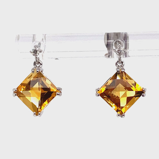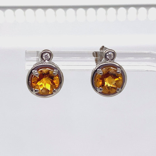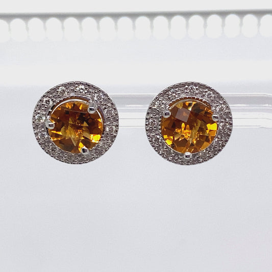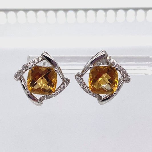 14K WHITE GOLD CITRINE DIAMOND ACCENT EARRINGS 2.00 CT