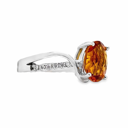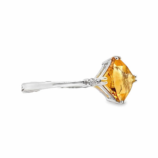 14K WHITE GOLD CITRINE & DIAMOND ACCENT RING 1.00 CT