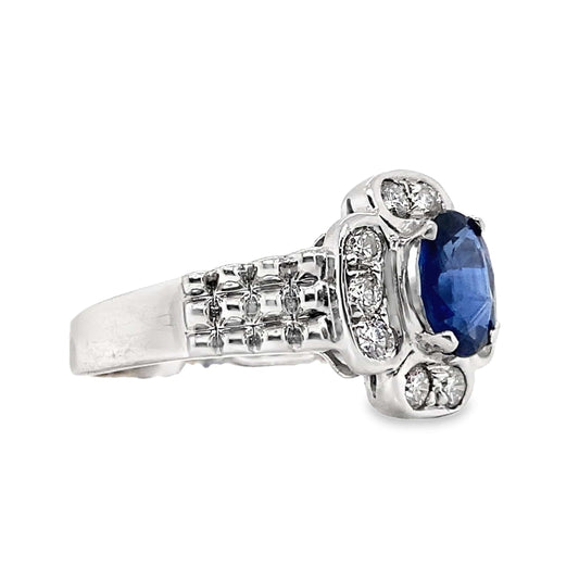 14K WHITE GOLD BLUE SAPPHIRE DIAMOND ACCENT FASHION RING 1.54 CT