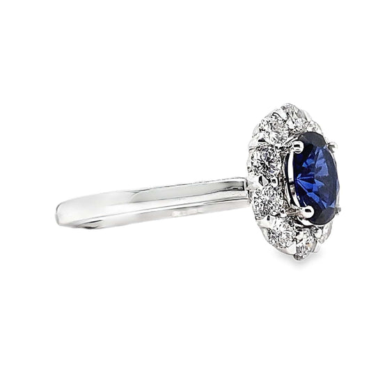14K WHITE GOLD LAB BLUE SAPPHIRE DIAMOND ACCENT CLUSTER RING
