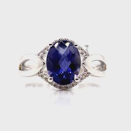 14K WHITE GOLD IOLITE & DIAMOND ACCENT RING 1.85 CT CENTER STONE