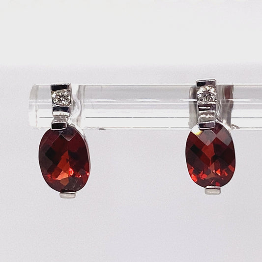 14K WHITE GOLD GARNET & DIAMOND ACCENT EARRINGS 2.00 CT TW