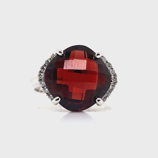 14K WHITE GOLD GARNET RING WITH NATURAL DIAMOND ACCENTS 8.50 CT