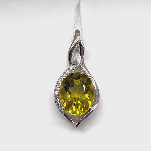 14K WHITE GOLD LIME CITRINE & DIAMOND ACCENT PENDANT 2.85 CT