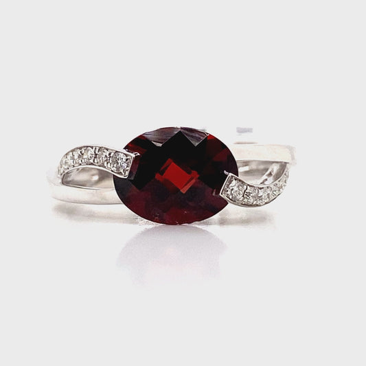 14K WHITE GOLD GARNET & DIAMOND ACCENT RING 2.25 CT
