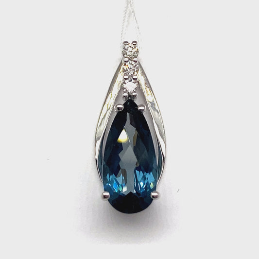14K WHITE GOLD LONDON BLUE TOPAZ & DIAMOND PENDANT 4.30 CT