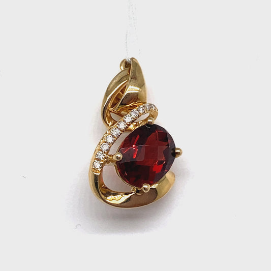 14K WHITE GOLD GARNET PENDANT WITH DIAMOND ACCENTS 1.026 CT