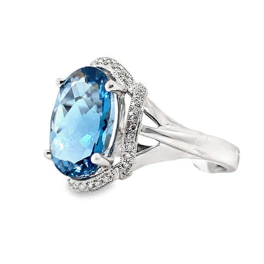 14K WHITE GOLD LONDON BLUE TOPAZ & DIAMOND ACCENT RING 3.85 CT