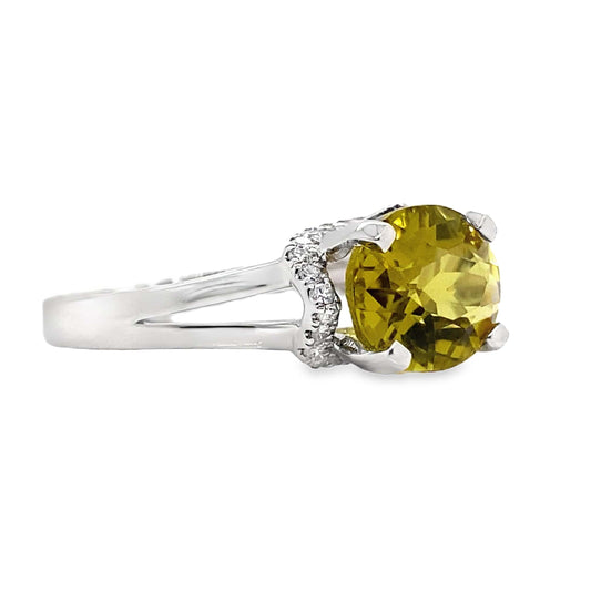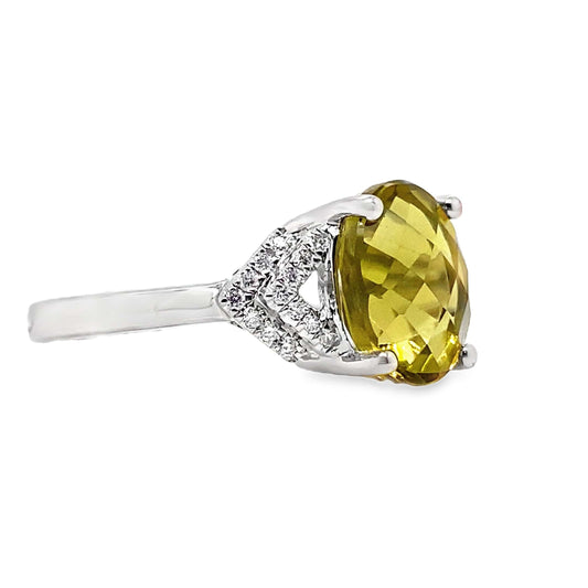 14K WHITE GOLD LIME CITRINE DIAMOND ACCENT RING 2.85 CT