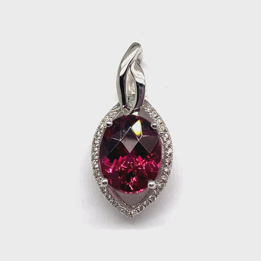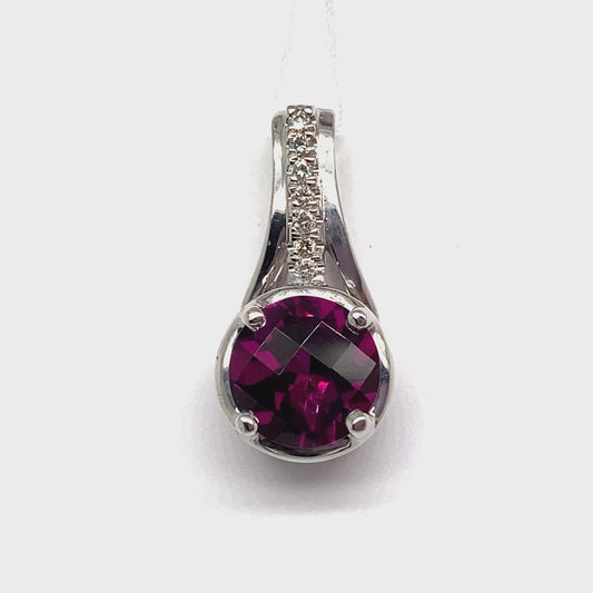 14K WHITE GOLD RHODOLITE & DIAMOND PENDANT 3.60 CT CENTER