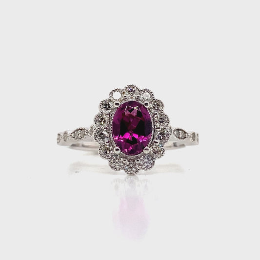 14K WHITE GOLD RHODOLITE & DIAMOND ACCENT RING 1.55 CT