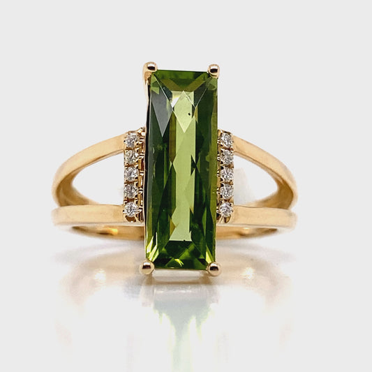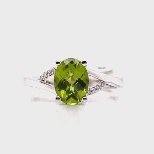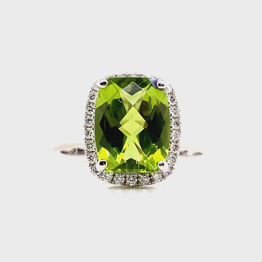 14K WHITE GOLD PERIDOT DIAMOND ACCENT RING 3.15 CT