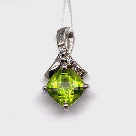 14K WHITE GOLD PERIDOT & DIAMOND ACCENT PENDANT 1.80 CT