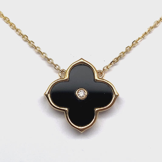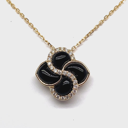 14K WHITE GOLD ONYX & DIAMOND ACCENT NECKLACE 1.35 TW
