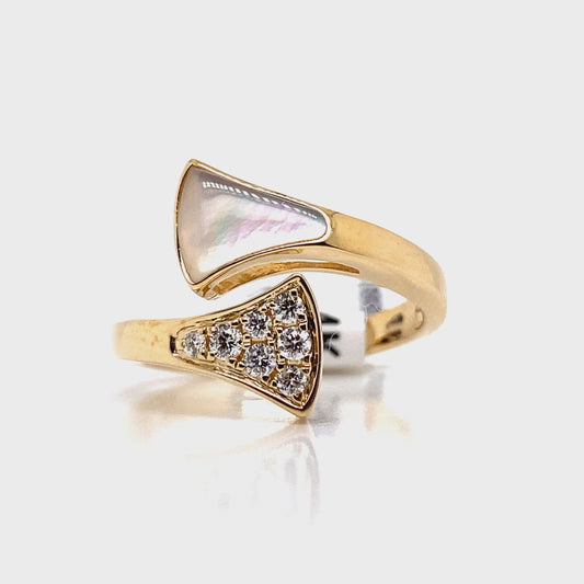 14K WHITE GOLD MOTHER OF PEARL DIAMOND ACCENT RING 0.38 CT