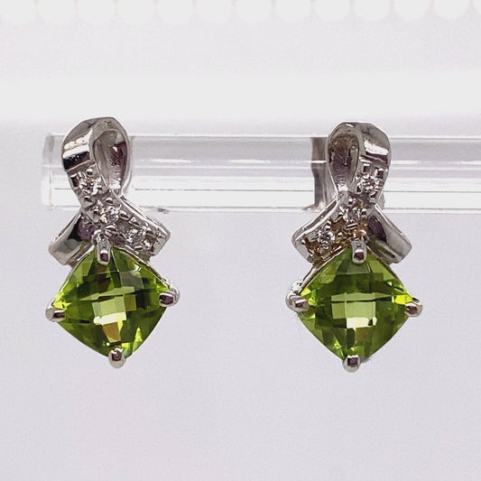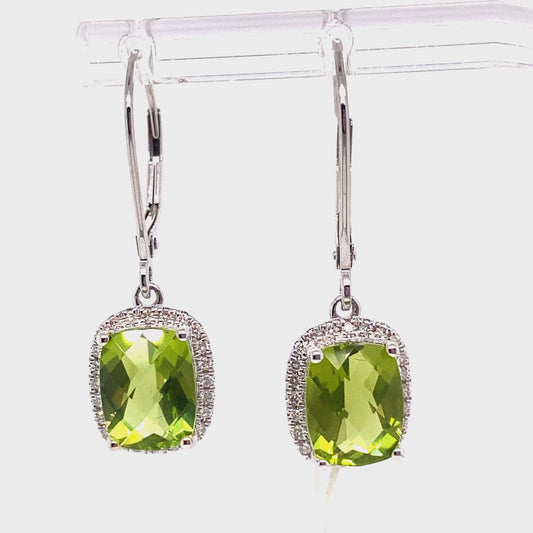 14K WHITE GOLD PERIDOT DIAMOND ACCENT EARRINGS 2.36 CT TW