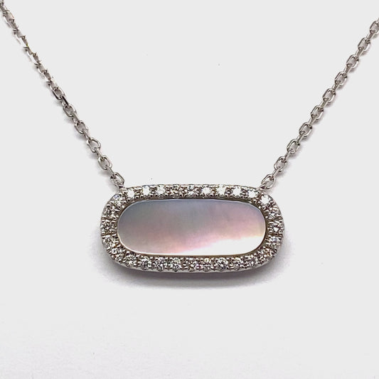 14K WHITE GOLD MOTHER OF PEARL DIAMOND ACCENT NECKLACE 1.00 CT
