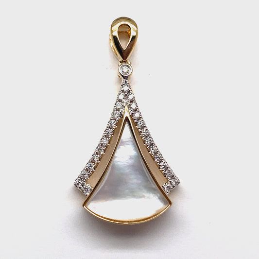 14K WHITE GOLD MOTHER OF PEARL DIAMOND PENDANT 2.25 CT TW