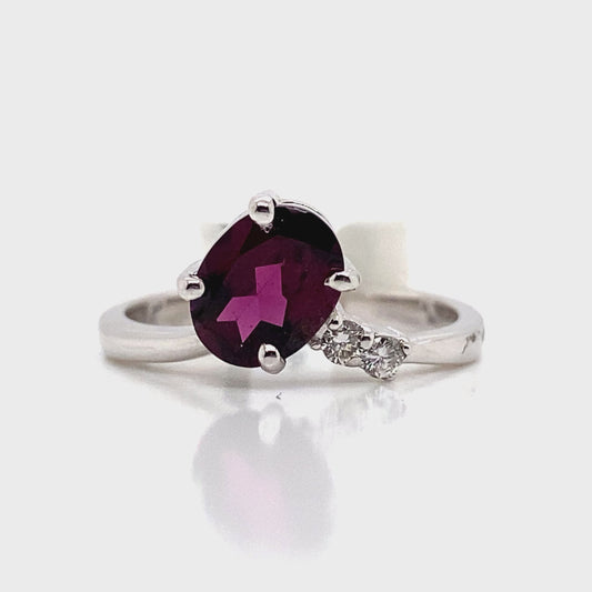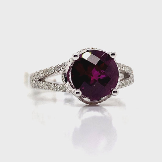 14K WHITE GOLD PURPLE GARNET & DIAMOND ACCENT RING 1.13 CT