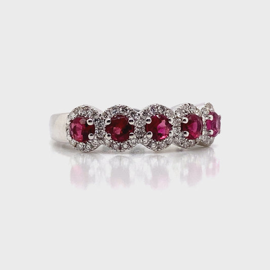 14K WHITE GOLD RED SPINEL & DIAMOND HALO RING 1.27CT CENTER