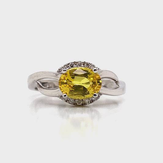 YELLOW SAPPHIRE & DIAMOND ACCENT RING IN 14K WHITE GOLD, 1.60 CT CTR