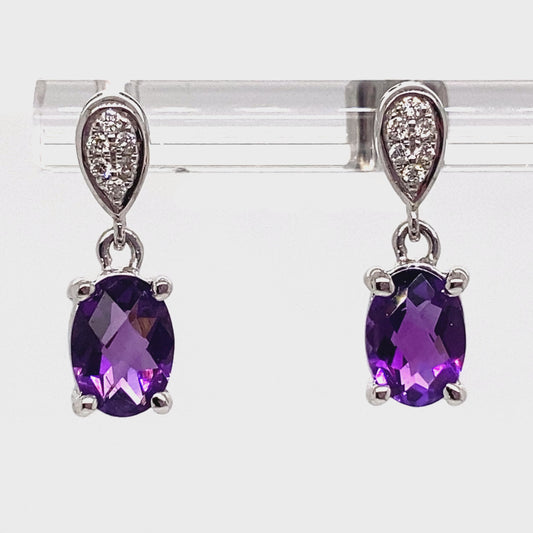 14K WHITE GOLD AMETHYST DIAMOND ACCENT EARRINGS 1.60 CT