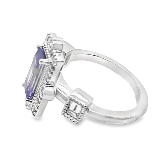 EMERALD CUT AMETHYST RING 14K GOLD WITH DIAMOND ACCENTS
