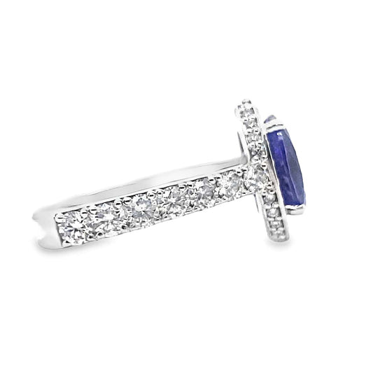 TANZANITE & DIAMOND FASHION RING 14K WHITE GOLD 2.28 CT OVAL AAA