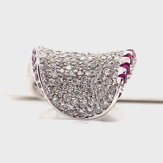 18K WHITE GOLD DIAMOND RUBY FASHION RING 2.10CT DIAMOND 2.20CT RUBY