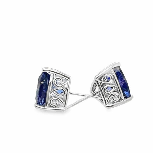 14KW 4.15CTW CUSHION TANZANITE AA SCROLL STUD EARRINGS