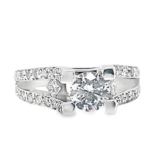 14K WHITE GOLD CZ CENTER DIAMOND ACCENT SPLIT SHANK RING