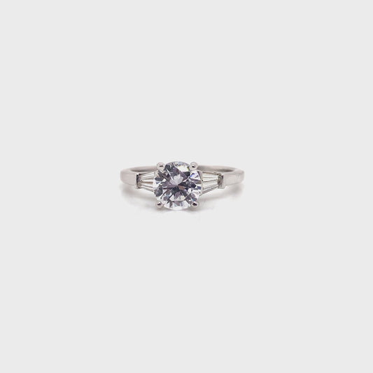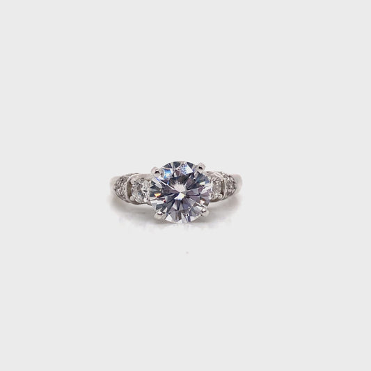 14K WHITE GOLD VINTAGE 3-STONE ENGAGEMENT RING WITH CZ & DIAMOND ACCENTS