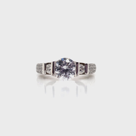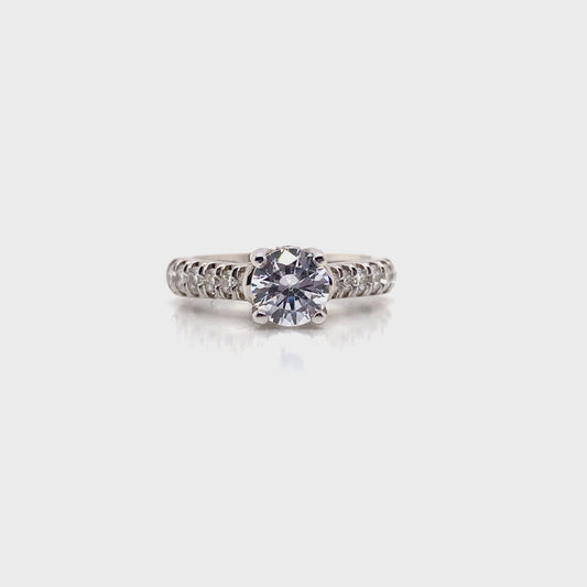 18K WHITE GOLD CZ CENTER DIAMOND ACCENT ENGAGEMENT RING 1.10 CT