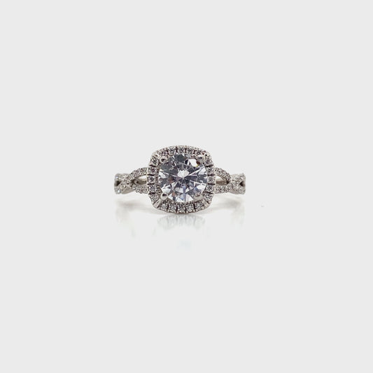 18K WHITE GOLD CZ CENTER DIAMOND HALO ENGAGEMENT RING