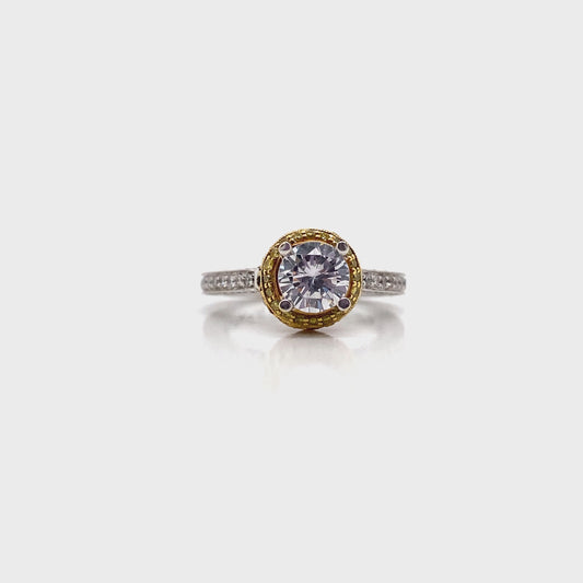 18K GOLD CZ CENTER DIAMOND ACCENT HALO RING, WHITE & YELLOW GOLD