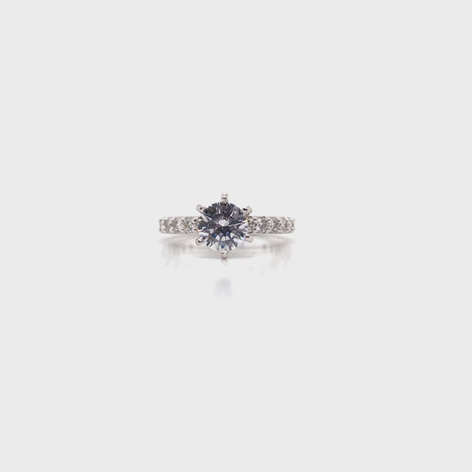 14K WHITE GOLD CZ CENTER DIAMOND ACCENT RING .80 CT TW