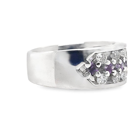14K WHITE GOLD DIAMOND AMETHYST FLOATING RING 1.0 CT TW