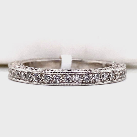 18K WHITE GOLD DIAMOND ACCENT MILGRAIN WEDDING BAND .35 CT