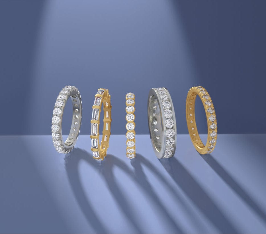 Eternity bands symbolize endless love with a continuous circle of diamonds or gemstones. Perfect for weddings or anniversaries, these stunning rings offer timeless elegance and enduring sparkle, making them a meaningful addition to any jewelry collection.