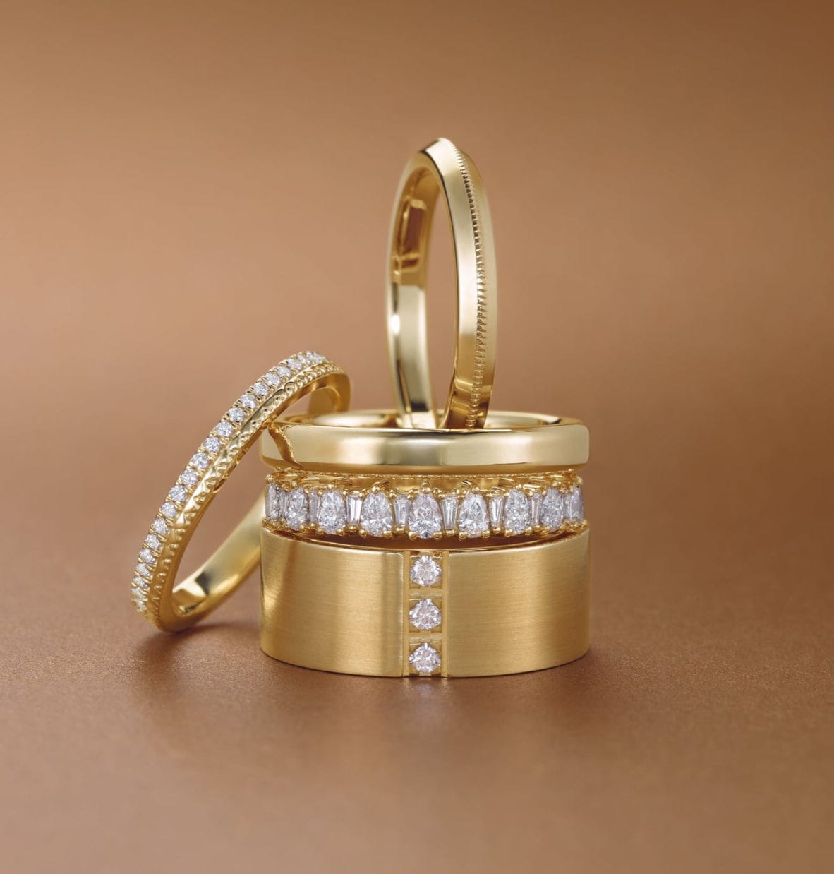 Yellow gold wedding bands embody timeless elegance and warmth, symbolizing love and tradition. From polished classics to intricate diamond-accented designs, their versatility and beauty make them a favorite for couples. Explore our collection to find a yellow gold band that tells your story.