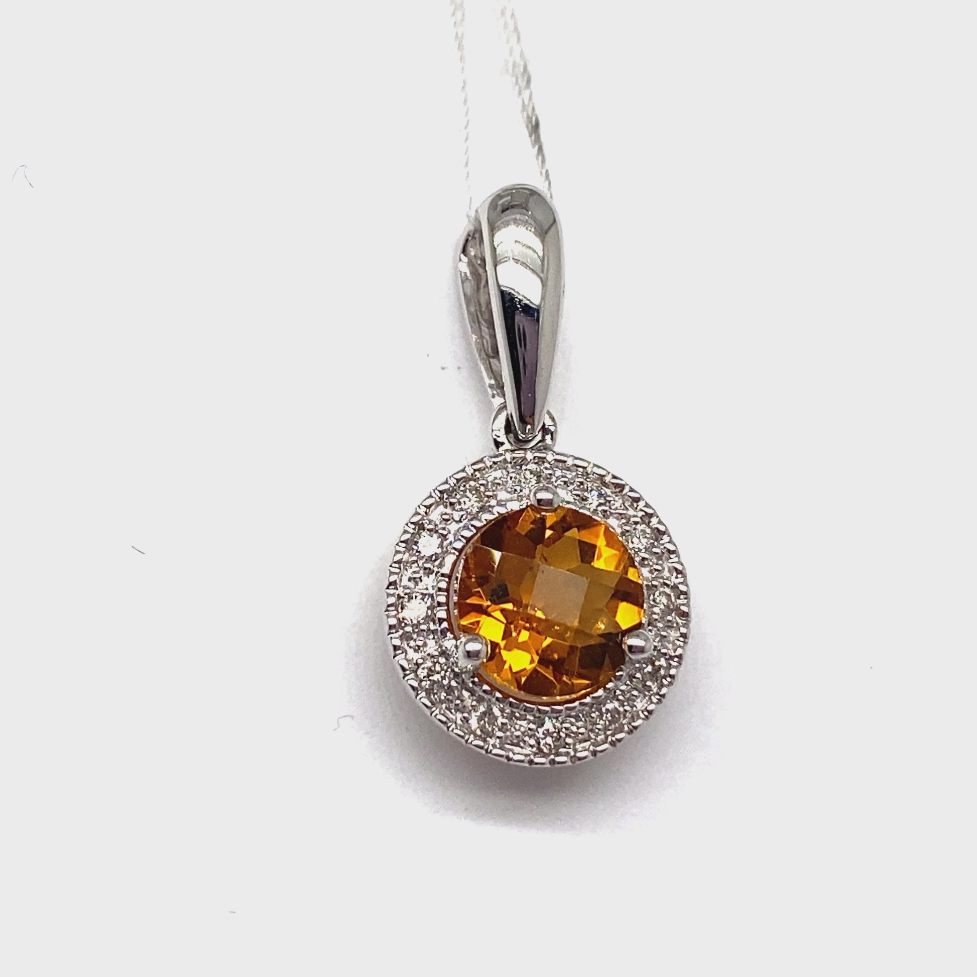 Enhance your elegance with this Citrine pendant necklace, featuring a vibrant 1.20-carat Citrine centerpiece and 12 diamonds totaling 0.096 carats. A timeless luxury piece.